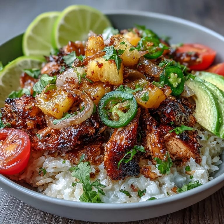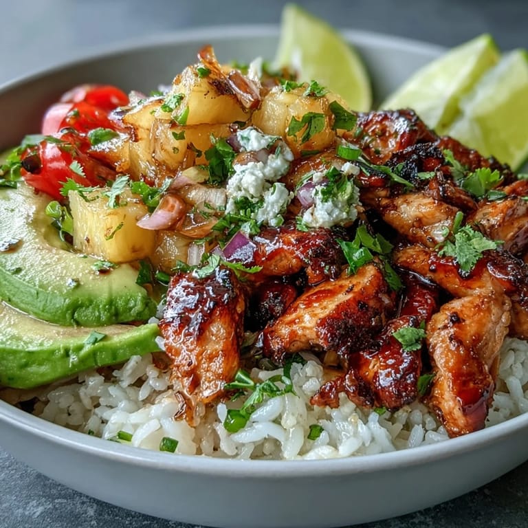 The magic of this dish lies in its layers of flavor and texture. The coconut rice provides a creamy, slightly sweet base that perfectly complements the savory spiced chicken. Fresh pineapple salsa adds bright acidity and natural sweetness, while creamy avocado and hearty black beans round out each bite. Every element works in harmony to create a bowl that's both nourishing and utterly delicious.
