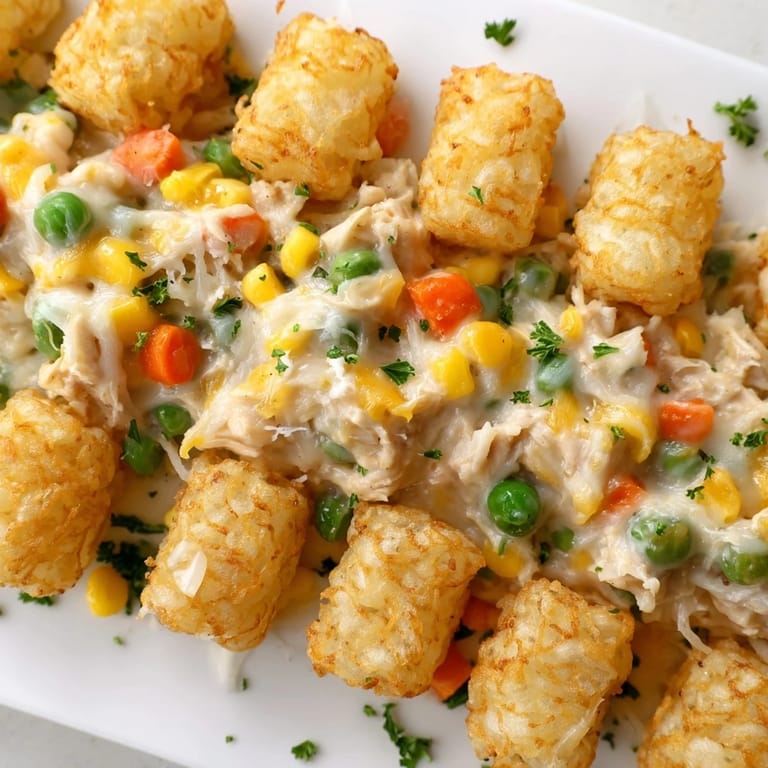 Pin it My sister called one Tuesday evening, frazzled from work, asking if I had anything quick for dinner that wouldn't feel like giving up. I'd just pulled a bag of tater tots from the freezer and had some leftover rotisserie chicken on hand, and somewhere between her sigh of relief and my rummaging through the fridge, this casserole came together. What started as kitchen improvisation became the dish she now requests every time she visits—golden, bubbling, and honest in the way comfort food should be.
