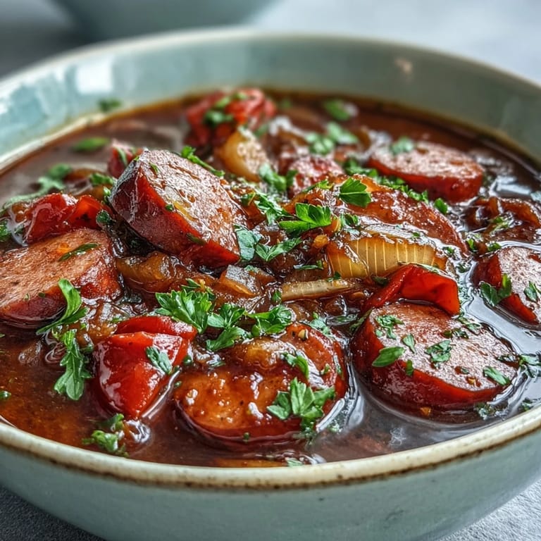 - Smoked cocktail sausages: The backbone of this whole thing—buy the ones that look properly browned and smoky because that flavor carries the entire soup, and slicing them into smaller pieces helps them distribute through each spoonful instead of pooling at the bottom.
