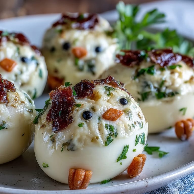 Pin it These Deviled Egg Chicks are the most adorable way to serve a classic appetizer with a playful twist. Perfect for Easter brunch, spring gatherings, or any celebration where you want to bring smiles to the table, these little hatching chicks transform ordinary hard-boiled eggs into charming edible decorations. With their tiny carrot beaks, peppercorn eyes, and jaunty egg-white caps, they look almost too cute to eat—but one bite of that creamy, tangy filling will have everyone reaching for seconds.