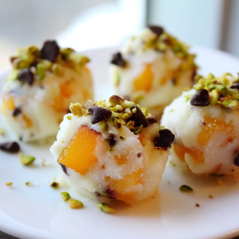Pin it Last summer, my daughter came home from day camp complaining about the heat, and I found her wilting on the kitchen tiles like a forgotten vegetable. I remembered my mom used to make something similar when I was young, so I grabbed a peach from the farmer's market and started experimenting with yogurt. Twenty minutes later, we had these little frozen bites stacked on a plate, and watching her eyes light up as she bit into one—that creamy, cold sweetness—made me realize I'd stumbled onto something special.