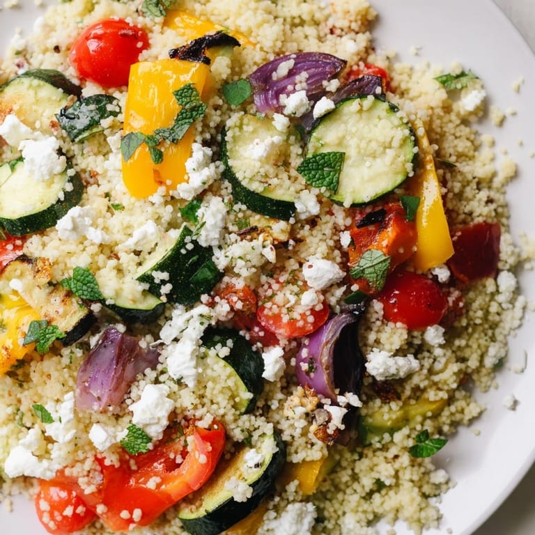 Pin it My neighbor handed me a bowl of this over the fence one August afternoon, still warm from her kitchen. I'd been staring at a wilting pile of bell peppers and zucchini from the farmers market, wondering what to do before they turned to mush. She told me it was just roasted vegetables and couscous, but the way the lemon cut through the sweetness of the caramelized peppers made it something else entirely. I asked for the recipe right there, leaning against the fence post with the bowl balanced in my hand.