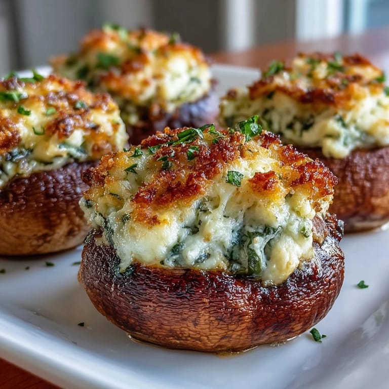 If you want these lighter, substituting cottage cheese works surprisingly well—just drain it first so the filling doesn't get runny. For anyone sensitive to nutmeg, skipping it doesn't hurt; a little extra basil or parsley makes up for it. I sometimes add a pinch of crushed red pepper for subtle heat, especially when the mushrooms are up against richer main dishes. Squeeze in a bit of lemon juice at the end for extra brightness if you like your appetizers really zingy.