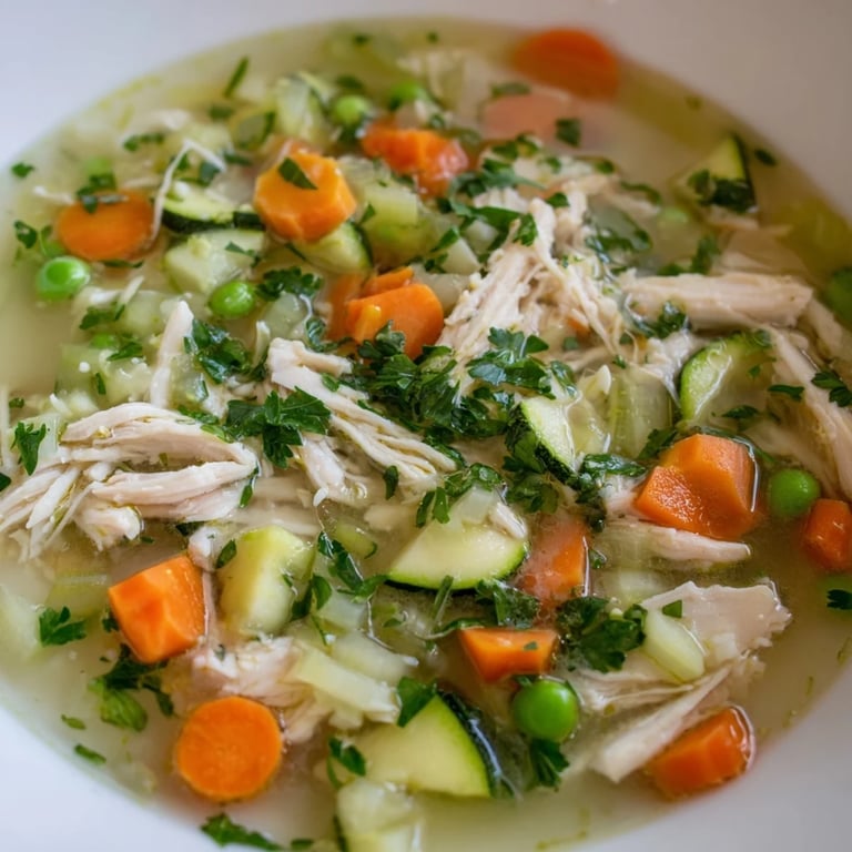 Pin it This soup has become my go to when someone needs comfort but nothing too heavy. I have made it for friends recovering from surgery, for new parents navigating those first exhausting weeks, and just for myself on quiet Tuesday nights. There is something about the combination of tender chicken and sweet spring vegetables that feels like a hug in a bowl.