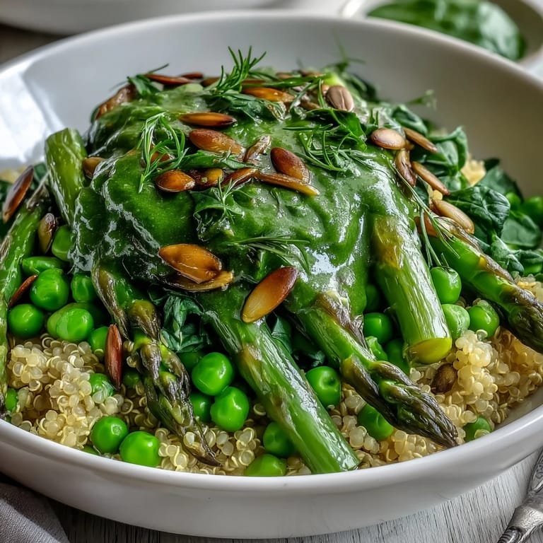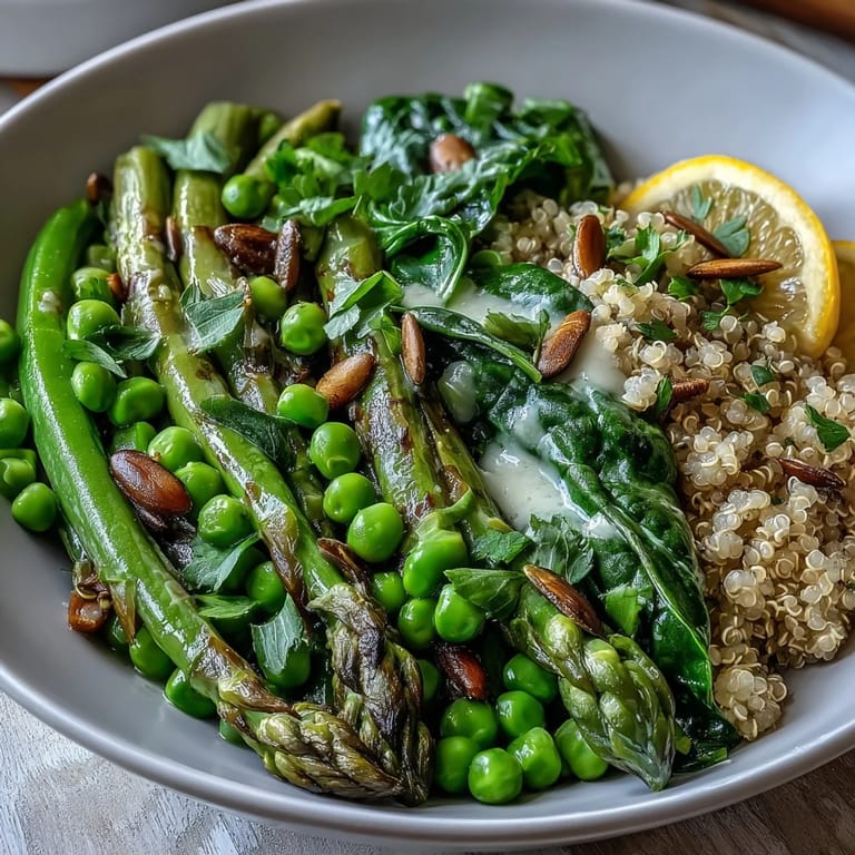 Pin it There's something about assembling a spring green bowl that feels less like cooking and more like arranging a edible garden on a plate. I discovered this particular combination on a Tuesday afternoon when my farmer's market haul was threatening to wilt, and I needed something that celebrated those just-arrived tender vegetables without overthinking it. The bright lemon dressing came together in the time it took my water to boil, and suddenly I had four bowls that looked vibrant enough to photograph but tasted even better than they looked.