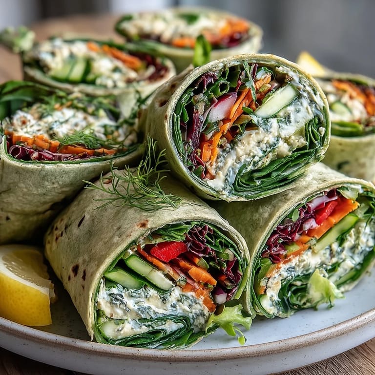 These wraps are wonderfully versatile and can be served in various settings. For a complete meal, pair them with a side of mixed greens dressed in lemon vinaigrette or a light soup like tomato basil or vegetable minestrone. They're perfect for packed lunches—wrap them tightly in parchment paper or aluminum foil to maintain freshness. Serve them at parties or gatherings by slicing them into smaller pinwheels for easy finger food. The wraps can be made up to 4 hours in advance and kept chilled, making them ideal for picnics, potlucks, or meal prep. A squeeze of fresh lemon juice just before eating brightens all the flavors and adds a refreshing citrus note that ties everything together beautifully.
