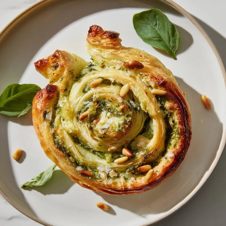 Pin it Flaky puff pastry pinwheels filled with vibrant basil pesto and nutty Parmesan, shaped into cheerful stars&perfect as a festive appetizer or party snack.