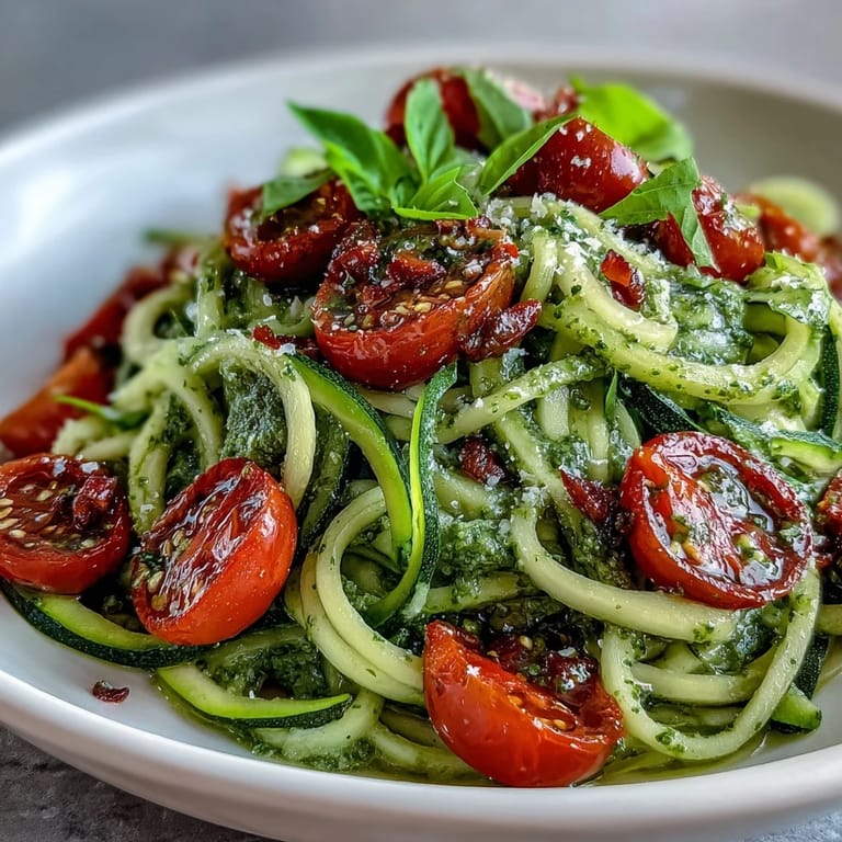 I once served these zucchini noodles at a small backyard lunch when the weather demanded something cool and bright. Everyone gathered around, curious about the spiralized vegetables, and we joked about the "noodle imposters." The pesto was so fragrant that it almost acted like a conversation starter. It became an easy staple whenever friends wanted something simple but satisfying. Sharing this recipe always reminds me of laughter echoing off the patio stones.
